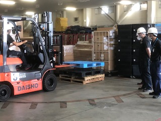 トヨタL&F様を講師にお招きし、弊社倉庫スタッフおよびドライバーなど8名が受講しました。